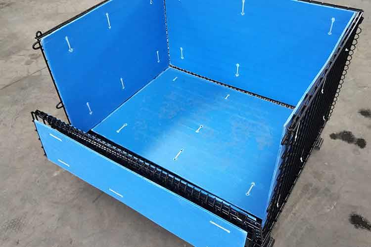 、可選配中空板作襯墊,保護裝載工件。中空板倉儲籠主要部件分網片制造和底盤制造